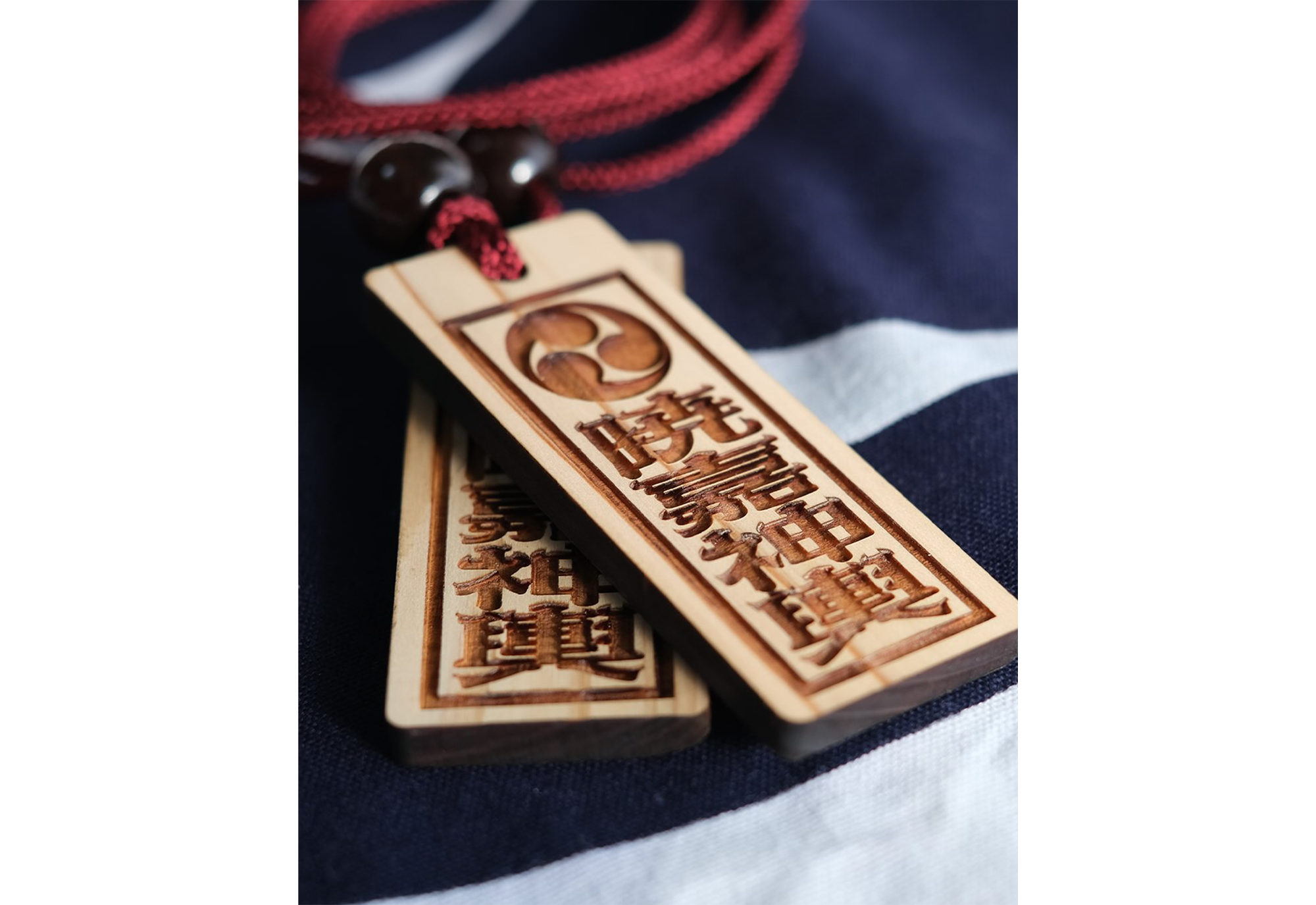 この二文字には、夜明けのように清らかな希望とともに、久米の地に喜びが満ち、未来へと明るく善き日々が続いていくように——そんな願いを込めています。神輿が巡る先々に、あたたかな兆しと人々の笑顔が芽生えていくことを願って、この札を制作しました。